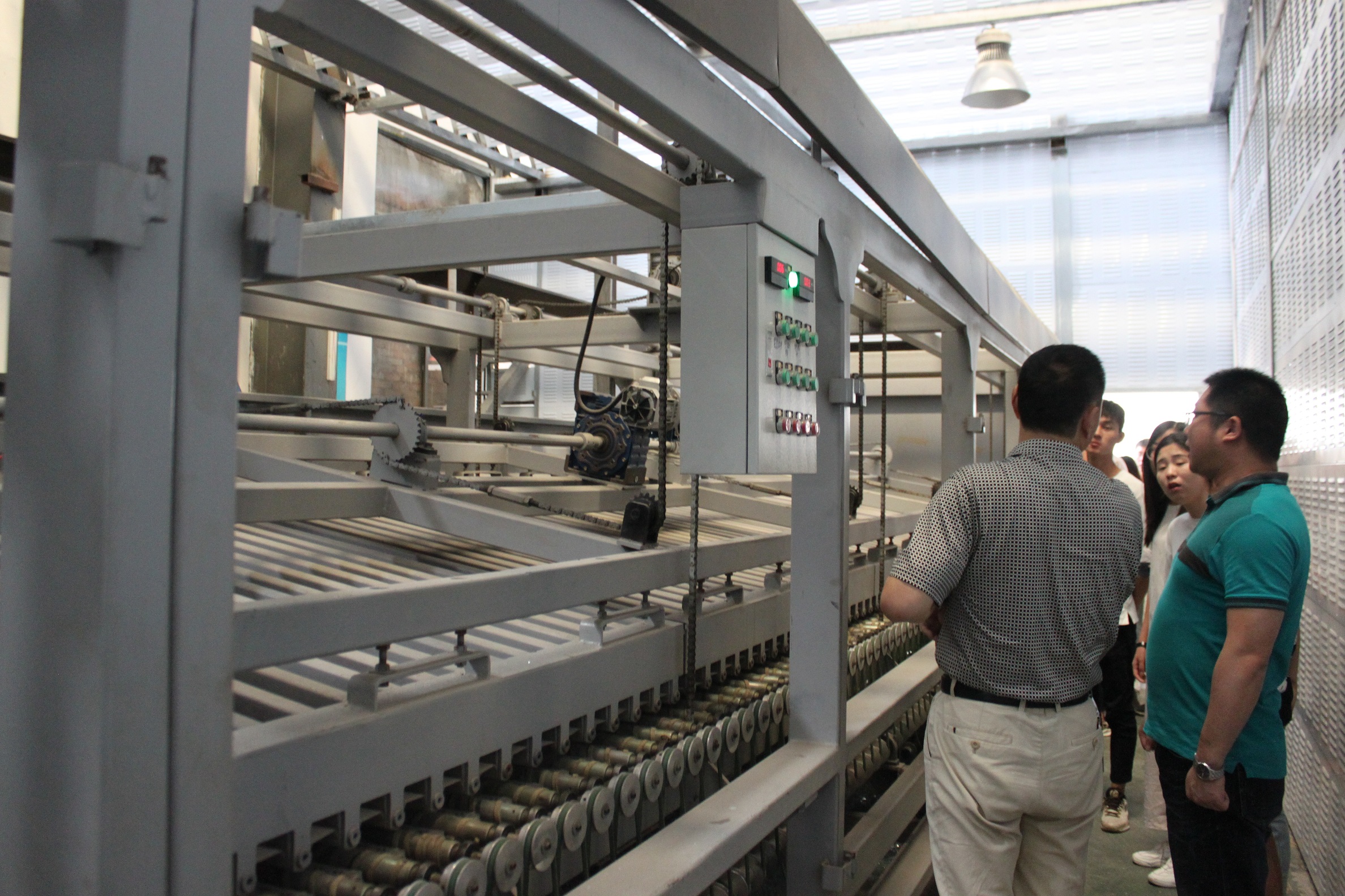 彩晶事業部長魏常宏的帶領下,綜合管理部葉、行政經理馬向明的陪同下,我們來到了參觀的第一站:彩晶事業部制一部生產車間。魏部長細心的給同學們講解,并讓同學們看到了每一片玻璃從進廠、到切割、加工、打磨、水洗,到合格的離開這個廠區。車間機械的轟鳴聲,絲毫不減同學們的興趣與激情,同學們緊跟著隊伍,仔細的觀看,認真的聆聽,雖然聽得也只是只字片語,但從同學們頻頻點頭可以看出,同學們都心領神會。