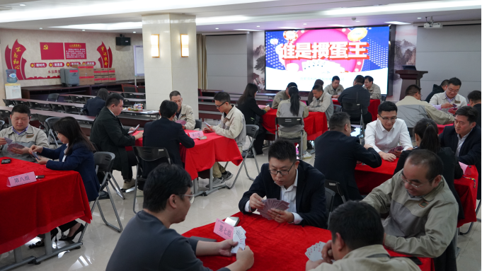 接下來(lái)的比賽是撲克游戲——摜蛋,這是一場(chǎng)智力與合力的精彩角逐。比賽現(xiàn)場(chǎng)氣氛熱烈,選手們兩兩組合,默契配合,斗智斗勇。牌桌上,牌技與默契的配合是取勝的關(guān)鍵。有的選手深思熟慮,出牌謹(jǐn)慎;有的選手則果斷勇敢,敢于沖鋒陷陣。每一次出牌、每一次決策,都凝聚著選手們的智慧和謀略。搭檔之間相互配合,眼神交流、手勢(shì)暗示,心有靈犀,共同應(yīng)對(duì)對(duì)手的挑戰(zhàn)。現(xiàn)場(chǎng)牌局精彩紛呈,局勢(shì)瞬息萬(wàn)變,選手們?cè)诰o張而又愉快的氛圍中享受著摜蛋帶來(lái)的樂(lè)趣。