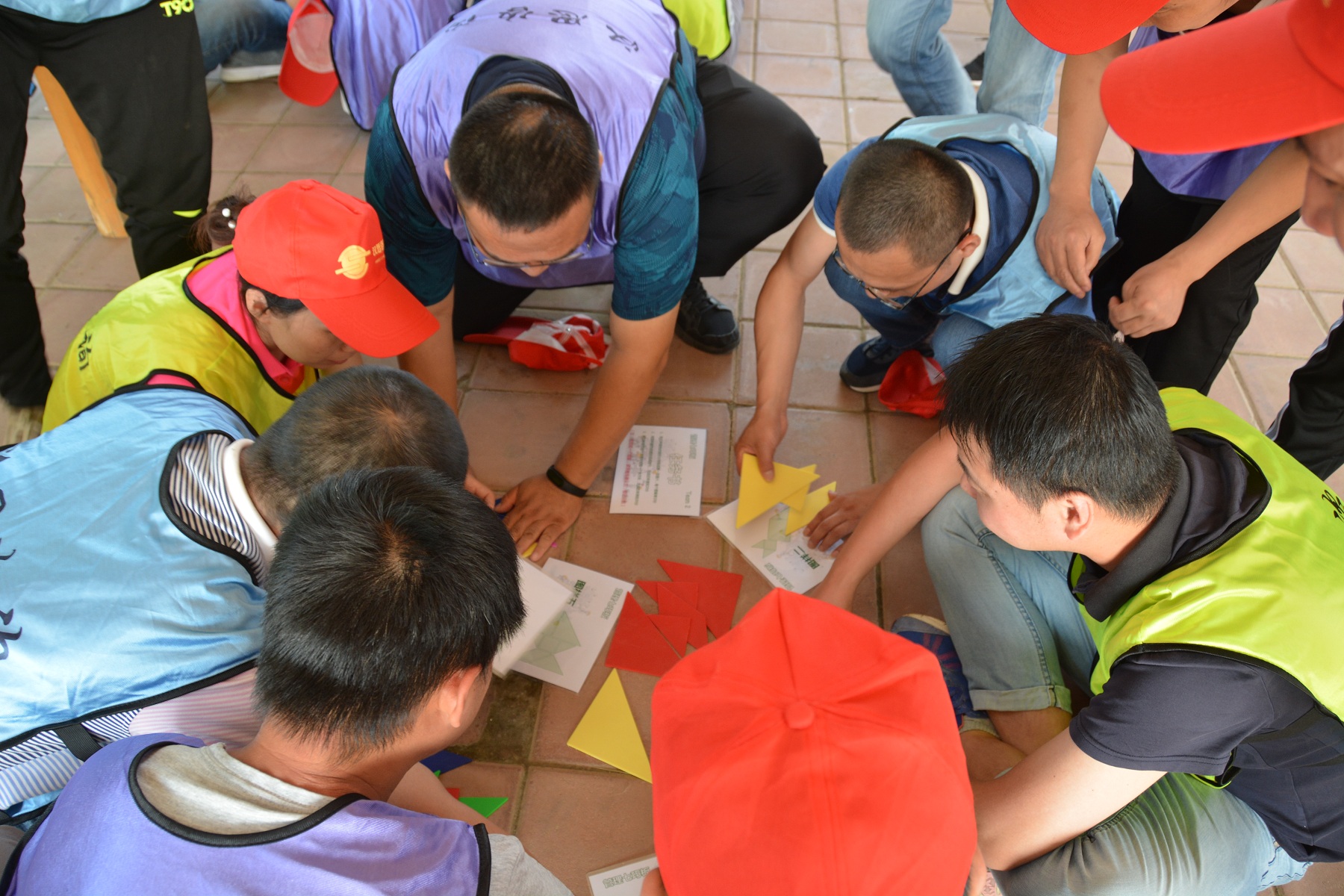 鑒于此次活動的參與人員跨部門、跨專業、跨層級,為保證所有人員的迅速融入,在隨機分成4組后,進行了“解手環”等兩個簡單活動的預熱,讓小組成員之間迅速的熟悉起來,為后續的團隊組建及文化展示奠定了良好的基礎。4組隊伍在創建團隊隊名、口號、隊標及基本隊伍操練后,進行了士氣昂揚的團隊展示。